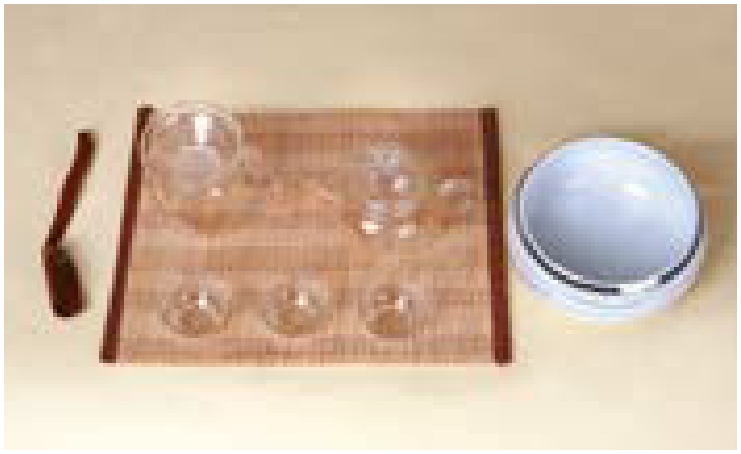 1 温具:向壶中注入沸水温烫。将温壶的水温公道杯。再将公道杯的水倒入品茗杯。