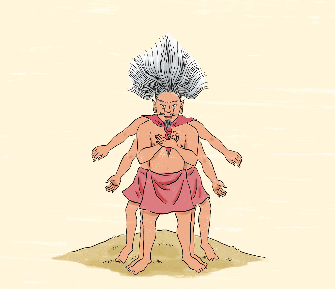 《大荒南经》中说:在茫茫的大荒之中,有一座山叫不庭山。那里有一个三身国,据说他们的祖先就是娥皇所生。这个国家的人姓姚,每个人都长着三个身体。他们也能役使四种猛兽。