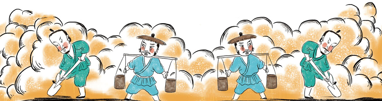 鲧心想:水来土掩吧,想办法把四处泛滥的洪水堵住,应该可以平息这场灾难。