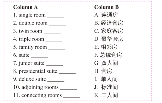 1.triple ['trɪpl] adj.三人的    4.deluxe [dɪ'lʌks] adj.豪华的