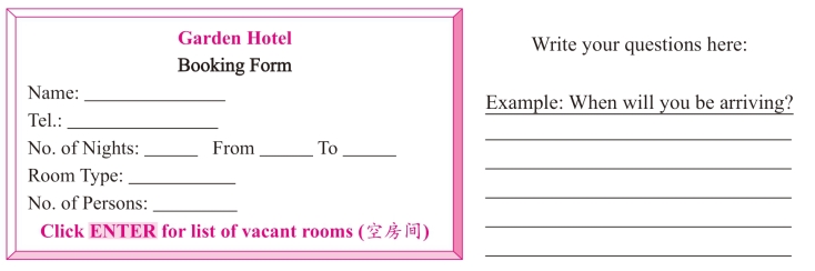 4.What kind of room would you like? □ 8.Could I have your telephone number, please? □