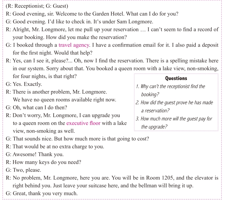 Student B:You are a receptionist.You can’t f ind the reservation record.Help Ms.Lee with the problem.Make sure the guest is satisf ied.