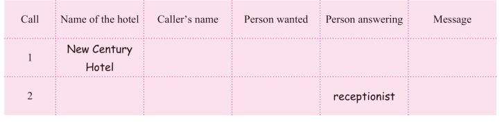 1.Student A:You are a hotel telephone operator.Answer the call and accept the request.