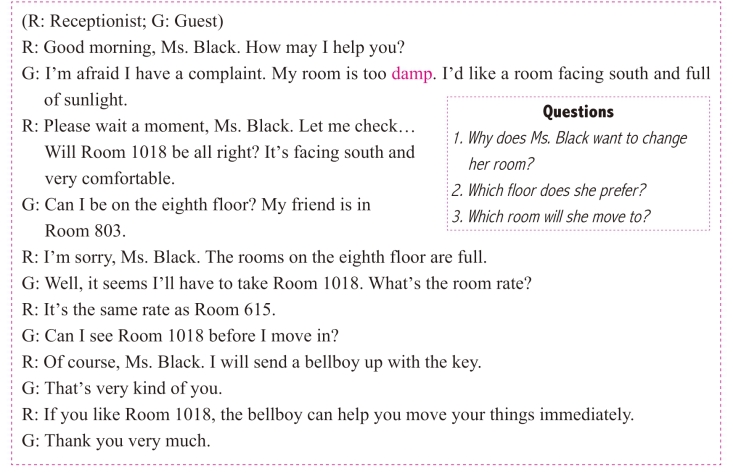 26.2 Do you know the guests’ expectations when changing rooms? Discuss with a partner and