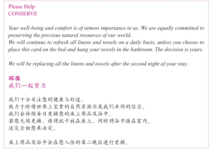 40.3 On the bedside table there is a card for guests.Read it and discuss with a partner:Do you think it necessary to prepare such a card for the guests? Why or why not?