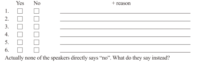 A You may hear people making different requests in the recording .Do the housekeeping clerks say “yes” or “no” to these requests? If no, what reason do they give?