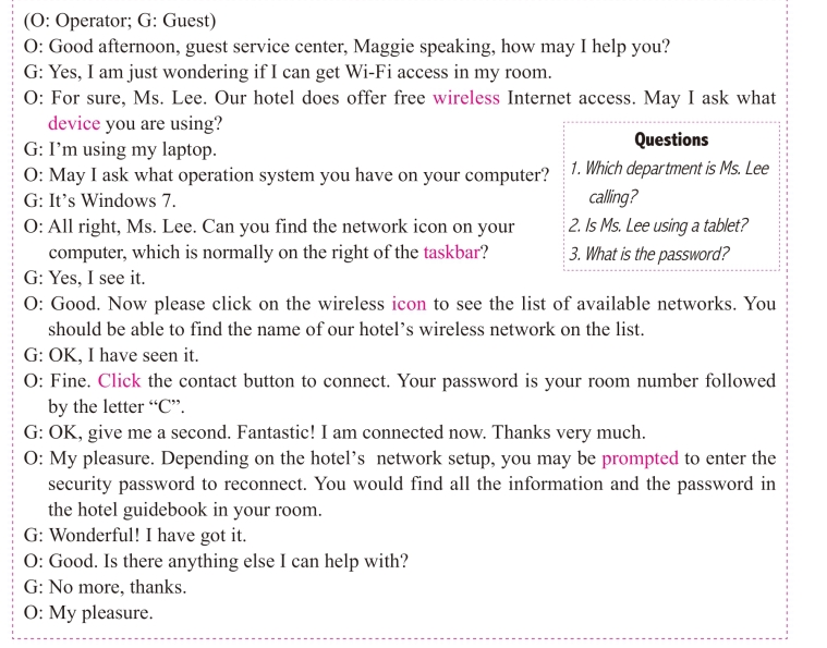 Student A:You are Mr.Brown.You want to download a game on your iPad via hotel’s Wi-Fi.You call to ask how to get on the Internet.