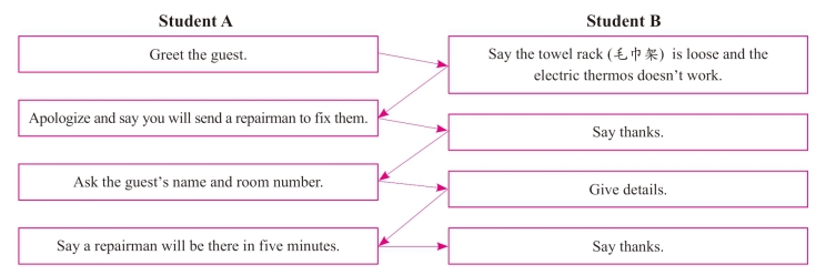 1.Student A:You are Mr.Smith.Call Housekeeping because the light in your bathroom is burnt out and the hair drier doesn’t work.