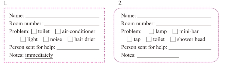 A Listen to people talking about their problems and tick (√) the correct answers.Fill in the blanks with the necessary information.