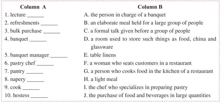 65.2 Match the expressions in Column A with their definitions in Column B.______________