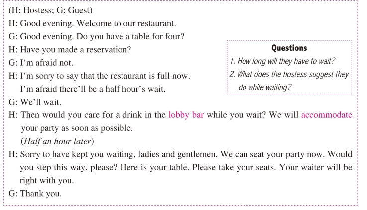 Student A, B:You want to have dinner but the restaurant is full.You decide to wait.