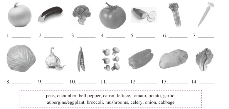 A Do you know these vegetables? Label the pictures with the correct words from the box below.Then listen and repeat those words.
