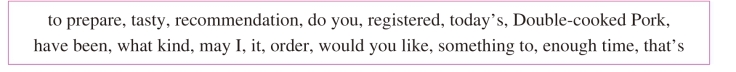 7.____________________ for the Roast Goose you ordered, ma’am.