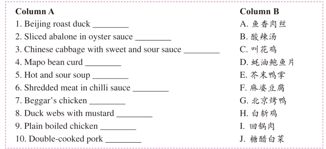 70.2 Match the expressions in Column A with their Chinese translations in Column B.___