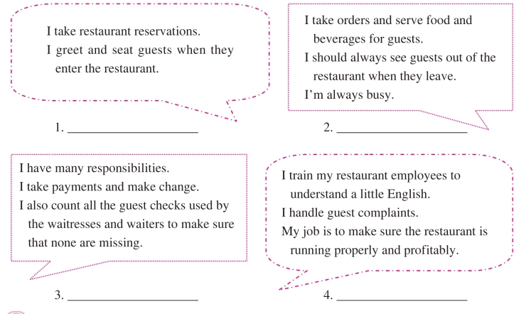 4.As a __________, I’m responsible for taking restaurant reservations and seating guests.