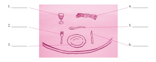 B Look at the dinner table in a Western restaurant.Study the expressions about a table setting.