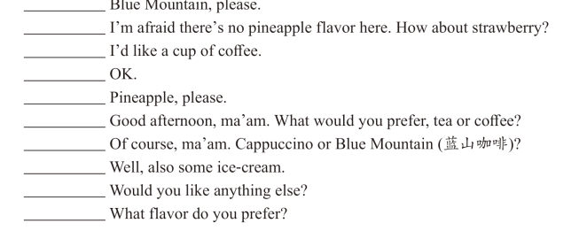 81.2 The following conversation is in disorder.First decide which sentence groups are spoken by the Guest (G) and which ones are spoken by the Bartender (B).And then number and rearrange those sentence groups to make an orderly conversation.