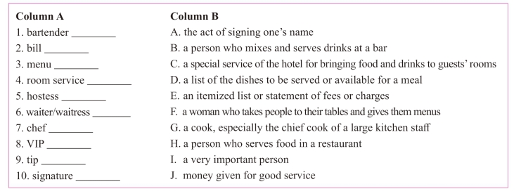 87.3 Match the expressions in Column A with their definitions in Column B.