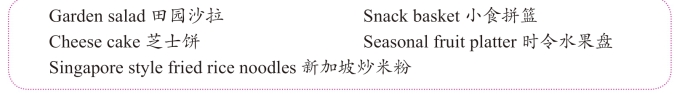 4.cracker ['krækə] n.饼干8.assortment [ə'sɔːtmənt] n.拼盘