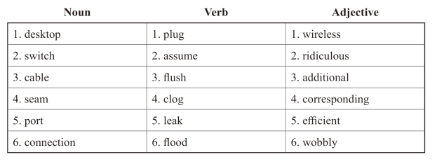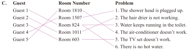 D.1.bathroom 2.running, toilet 3.hair, drier 4.seems 5.it’s, turned 6.see, to