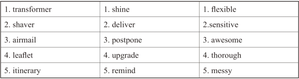 5.reminds 6.itinerary 7.shaver 8.leaf let