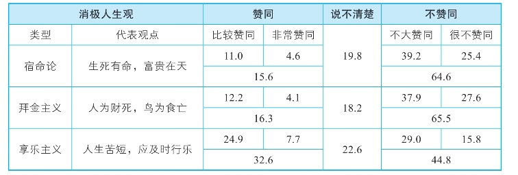 表1-1 有关消极人生观对大学生的影响状况(%)