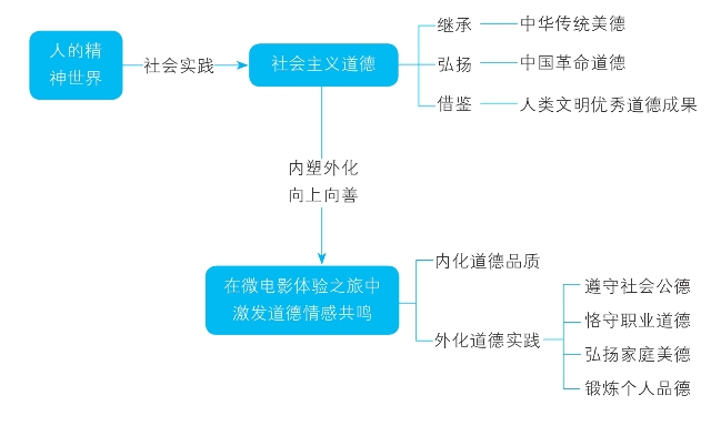 在理论学习和思考的基础上,通过实践深入践行和领悟,促进知、情、意、信、行的合一。本章具体内容的知行转化图如下。