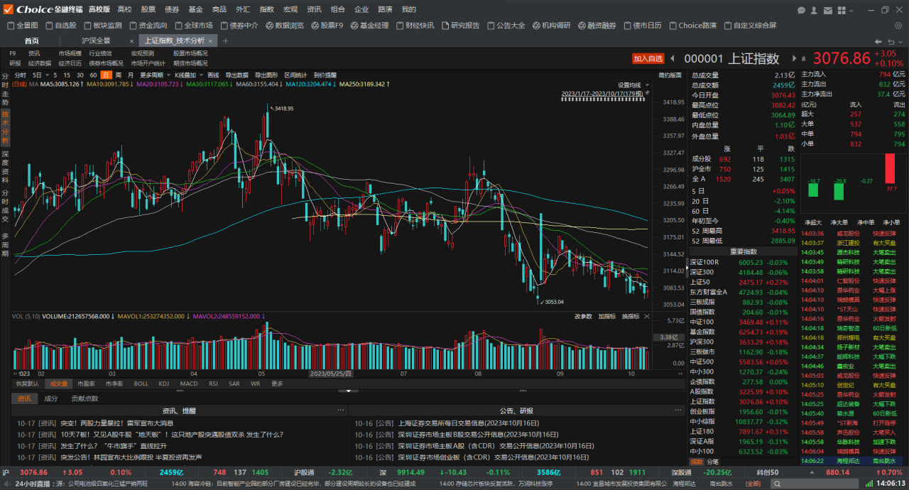 (3)通过研究历史的数据与当前的行情来研判股价或大盘未来走势的轨迹,包括K 线图形的形态分析、成交量分析、各种技术指标的分析、时间周期的分析及在此基础上所进行的综合分析。