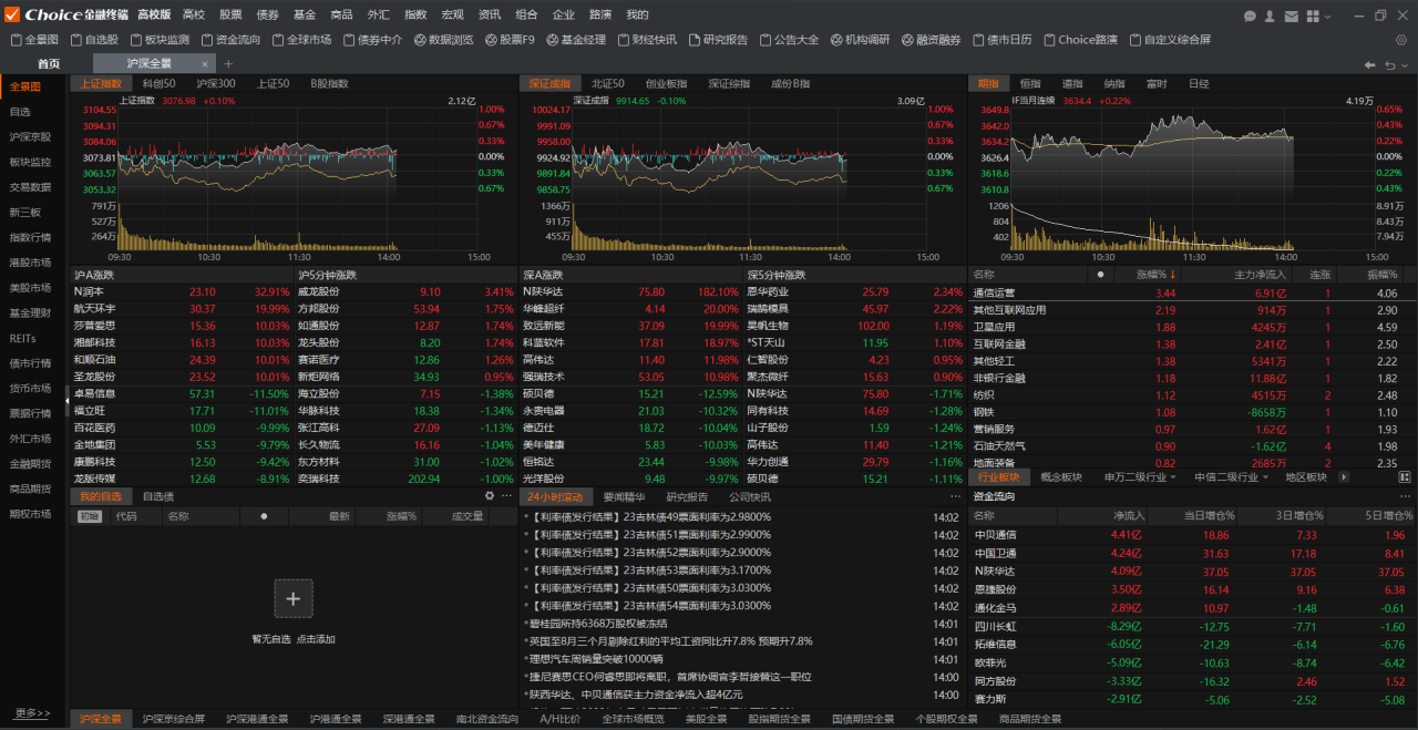 1.进入“高校 -> 看行情->全景图”定位展示股票行情,见图4-4-38。