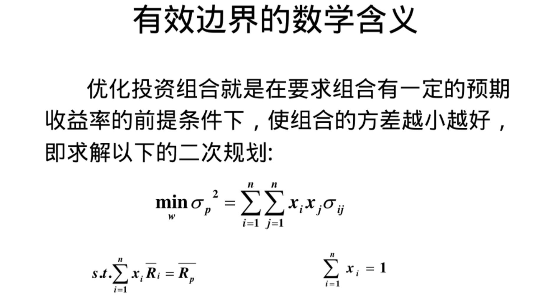 注意:视频中,讲解的六只股票的收益率列表为收益率的离差,即ri-E(ri);