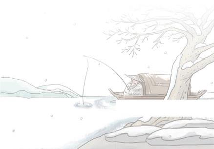 在古诗中,一些数词如三、七、九、千、万等,除了表示事物的数量,还有表示众多的意思。这些数词不仅可生动形象地描摹出事物的情状,还可鲜明细腻地反映出作者的感情。正如本诗开头两句中的“千山”和“万径”,诗人并不是说有一千座山和一万条小路,而是说有很多很多的山和小路,表明整个世界的幽静寒冷。因此,那个专心钓鱼而忘记寒冷的老翁,此时就更显得清高、孤傲了。