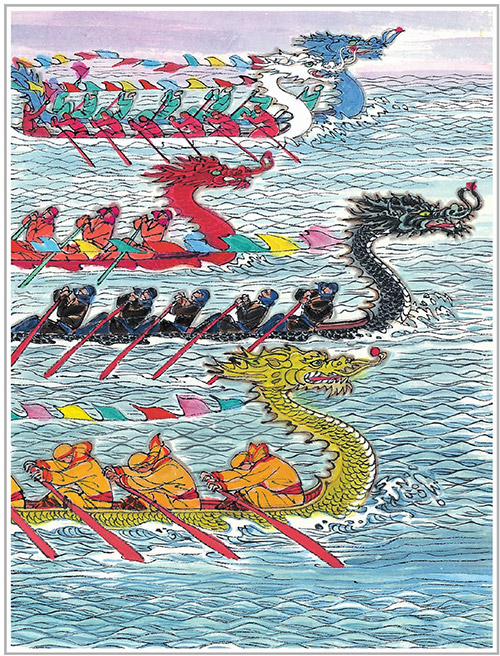 附近的庄稼人,得到这个信儿,都划着小船去救屈原。可是一片汪洋大水,哪儿有屈原的影儿。大伙儿在汨罗江上捞了半天,也没有找到屈原的尸体。