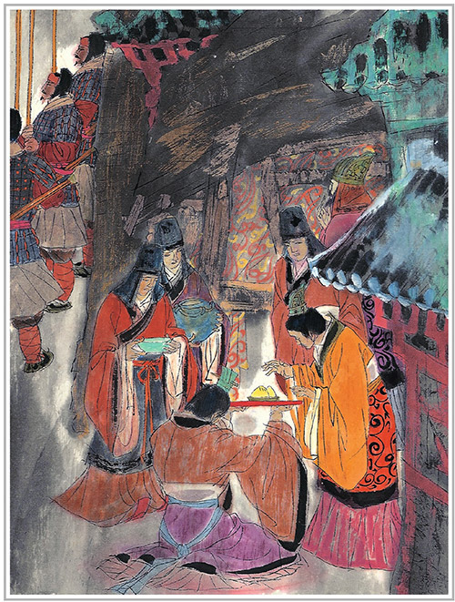 谋士荀彧(音yù)说:“从前晋文公发兵把周襄王送回洛邑(今洛阳),成为霸主;汉高祖为义帝发丧,天下人都向着他。这样的例子历史上是不少的。现在皇上到了洛阳,困苦不堪。将军如果能把皇上迎来,这正是顺从人们的愿望。要是现在不及时去接,一旦让别人抢先迎去,我们就错过机会了。”