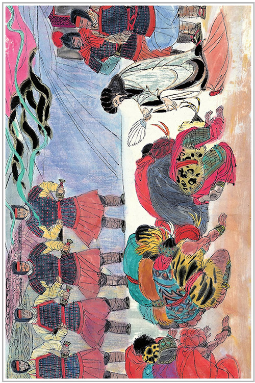 益州郡有个豪强雍闿(音kǎi),听说刘备死去,就杀死了益州太守,发动叛变。他一面投靠东吴,一面又拉拢了南中地区一个少数民族首领孟获,叫他去联络西南一些部族起来反抗蜀汉。