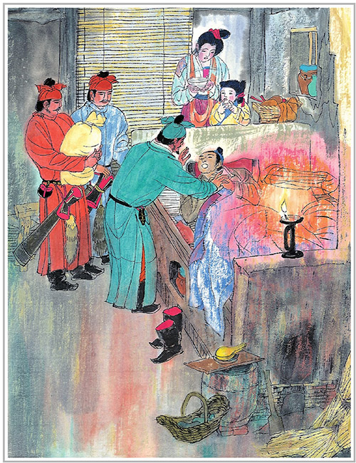 鸡叫头遍的时候,天蒙蒙亮了,雪也止了。唐军已经占领了吴元济的外院,吴元济还在里屋睡大觉呢。有个淮西兵士发现了唐军,急忙闯进里屋报告吴元济说:“不好了,官军到了。”
