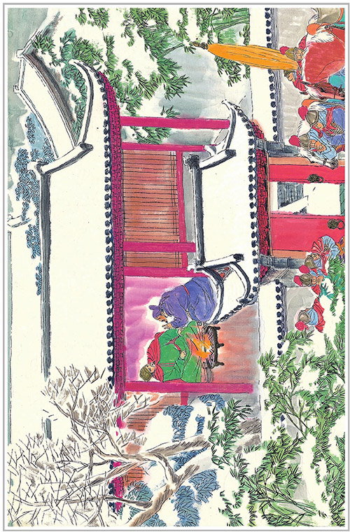 赵普连忙把宋太祖请进屋里,拨红了炭火,在炭火上炖上肉,叫他老妻拿出酒来招待。