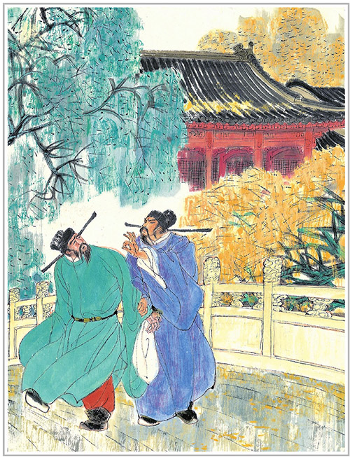 寇准在宋太宗时期担任过副宰相等重要官职,他的正直敢谏是出了名的。有一次,寇准上朝奏事,触犯了宋太宗。宋太宗听不下去,怒气冲冲站起来想回到内宫去。寇准却拉住太宗的袍子不让走,一定请太宗坐下听完他的话。宋太宗拿他没有办法,后来还称赞他说:“我有寇准,就像唐太宗有魏征一样。”