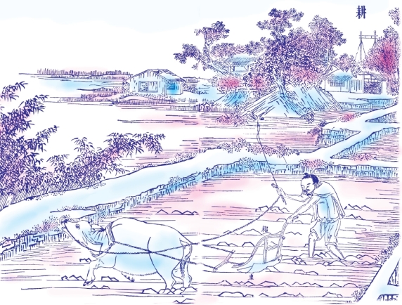 苏州一带耕田的农民,用铁锄代替犁,因此不用耕牛。依我愚见,贫苦的农户,如果合计一下购买耕牛的本钱和水草饲料的费用,以及牛被盗、生病、死亡等意外损失,还不如用人力划算些。假如有牛的农户能耕种十亩田,没有牛而用铁锄辛勤耕作的农户也能耕种五亩田。既然无牛,那么秋收之后,也就无需考虑在田里种饲草、放牧这些麻烦事,而豆、麦、麻、蔬菜等作物尽可种植。这样,用第二次的收获来补偿少耕种五亩地的损失,似乎也与有牛的人家得失相当。