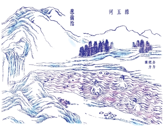 白玉河流向东南,绿玉河流向西北⑧。亦力把里⑨地,其地有名望野者,河水多聚玉。其俗以女人赤身没水而取者,云阴气相召,则玉留不逝,易于捞取。此或夷人之愚也夷中不贵此物,更流数百里,途远莫货,则弃而不用。