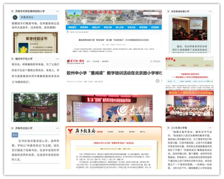 在活动期间,各地教育部门的新闻网站报道活动开展情况,并对积极参与活动的学校进行表彰。各地新闻媒体也持续关注各届“星阅读”活动的开展,报道当地学校的参与情况和活动的表彰情况。