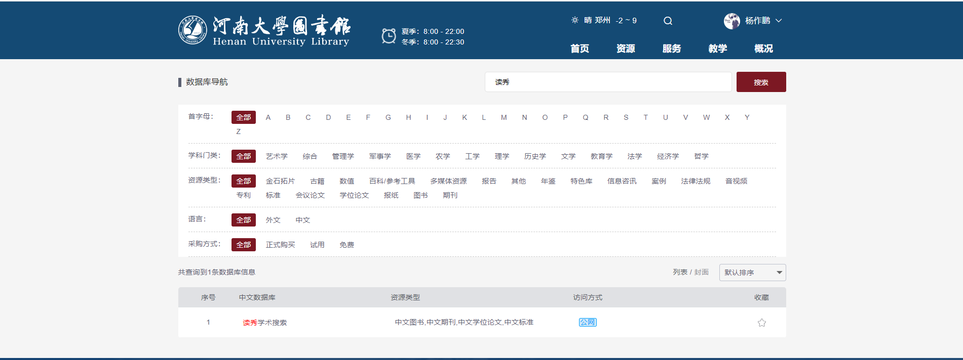 数据库检索,可以检索并访问本馆现有数据库。