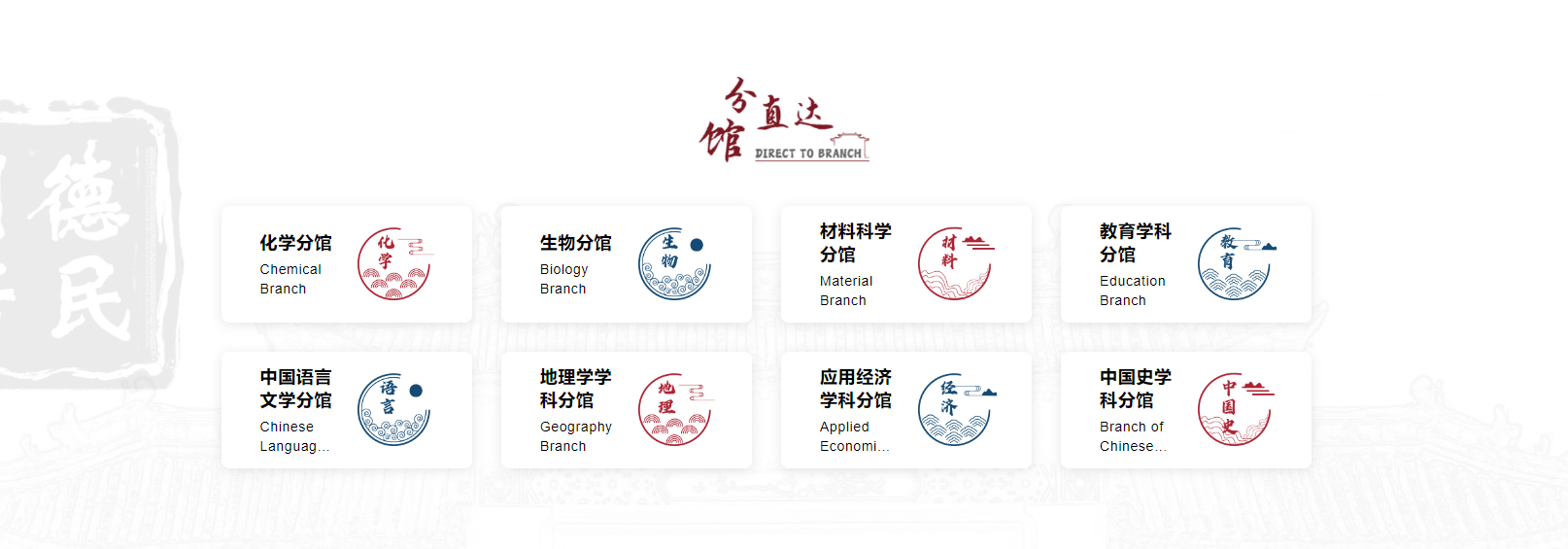 8个学科分馆内容,点击进入可查看获取相关学科资源内容。