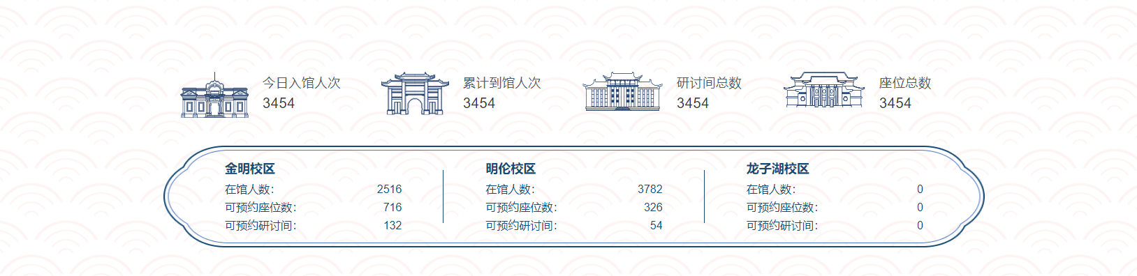 校区在馆人数、可预约座位数和研讨间数及时获取▲