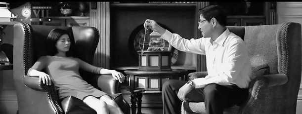 (1)明确主题。由于影片的情节存在断裂和自我消解的地方,其主题表达也就存在诸多模糊和游移的地方。红雨被绑架之后,父亲报案,积极营救,这是一个常规的拯救故事,主题是“正义战胜邪恶”或者“亲情的高贵与伟大”。但是,情节一转,红雨却自己回来了,这等于将前面建构的情节套路颠覆了,前面的主题也就被消解了。本来,影片也可以在“红雨怎样回来”这个悬念上做文章,讲述红雨如何通过自己的努力完成自我拯救,这样,影片高扬的就是个体的智慧、勇气、信心、坚持等品质。但是,当心理医生让红雨回忆如何逃出绑匪之手时(图36),观众看到的却是令人错愕的情节:红雨是个吸血鬼,她轻易地咬死了两个绑匪,从容地走回了家。本来,影片也可以通过心理医生的心理疗救来完成对红雨精神创伤的治愈,但“超能力”的出现,轻易地解决了人物的困境,影响了情节的逻辑性和观众的情感认同。因为,面对一个有超能力的女吸血鬼,观众不用为她担心,也不用为她的处境紧张。