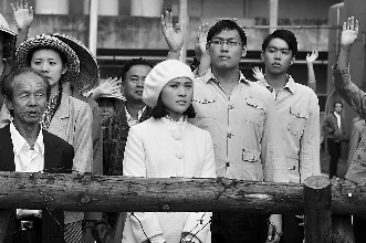 14.(化)背面,全景(暖色调),推至中景:60年前日本人离开台湾的情景,一身白衣的友子非常显眼,她四处张望(图45)。