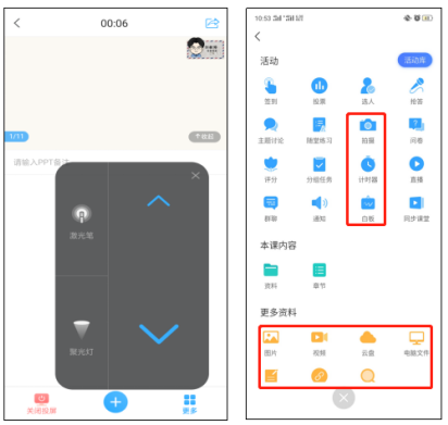 (4)除了可以投教案里头的PPT外,也可以将视频、音频、图片、笔记、图书等等投到教学屏幕上:
