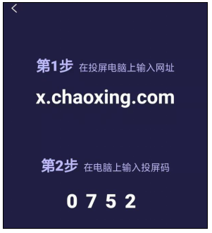 (3)打开浏览器输入网址:x.chaoxing.com,及投屏码0752,即可完成投屏。