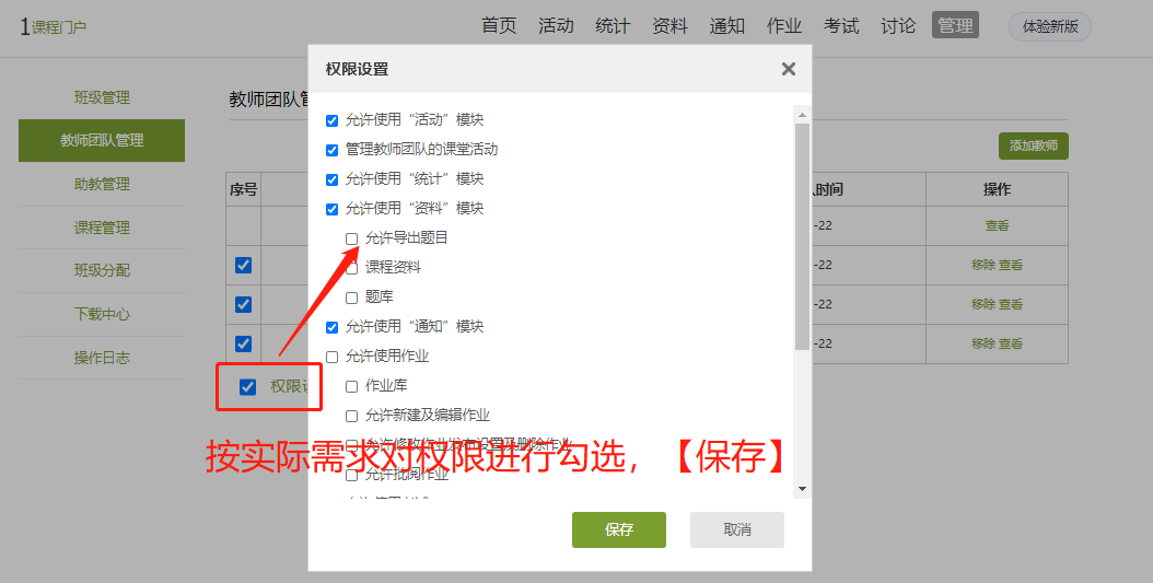 第三步:添加完毕后,还需对备课组成员们进行权限的设置,