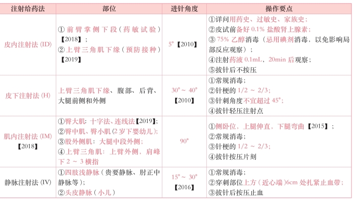 (1)肥胖者:正面刺入,角度稍大,约30°~40°【2016、2010】。