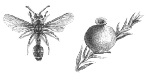 泥蜂大概是黑色而有黄纹的,又可分做腹柄细长的,或不细长的两种,都要吸食伞形科等植物的花汁,在石上、墙隅、枝上、树皮下等处,用泥造巢。它们的巢,普通同樱桃一般大,也有拳头大的。